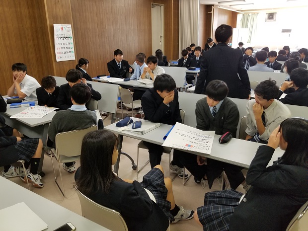 生徒たちは、どのテーマを選択しようか考えながら一生懸命メモを取っていました。